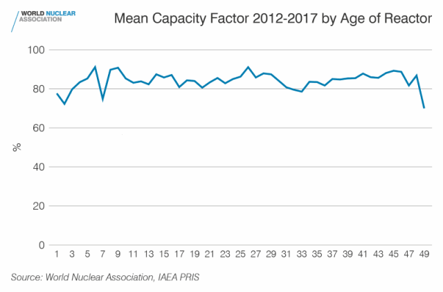 Analysis published in the World Nuclear Performance Report shows that on average the world’s nuclear reactors show no significant age-related variation in performance.