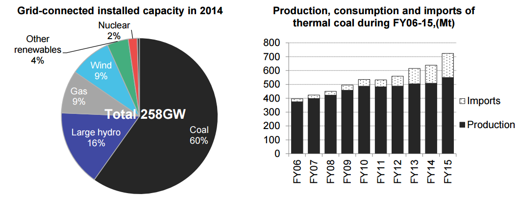 Coal currently dominates India’s power generation capacity. A record 19.4GW of coal capacity was added in FY2015.