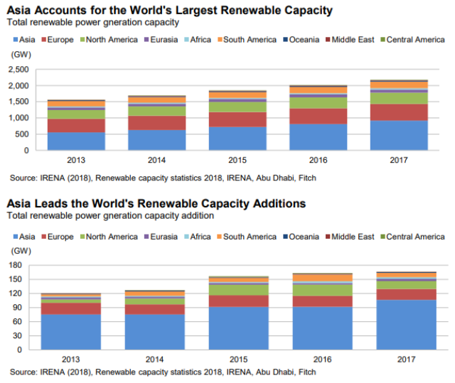 Fitch Ratings analysts Jenny Huang, Ying Wang and Sajal Kishore said Asia has emerged as the largest source of global renewable power additions, due to supportive state policies and viable economics.