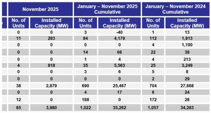 Solar leads new capacity additions in November and year to date