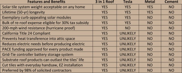 A lower price point isn’t all 3 in 1 Roof accomplishes. Based on Florida Solar Energy Center reports, the insulated 3 in 1 Roof tiles “Reduce before they Produce” the structure’s energy needs by up-to 38 percent. Factor in US Census population urban concentration reports and the average homeowner saves roughly 18 percent BTU consumption just from 3 in 1 Roof’s insulation. Regarding that same USA re-roof, its revised power need drops from an 8kW to a 6.5kW system, lessening the 3 in 1 Roof price from $21.25 to $19.66 per square foot, installed.