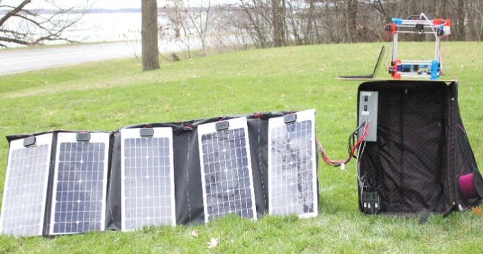 This 3D printer can run for 35 hours on a single charge continuously due to the large panels and batteries.