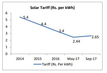 The latest wind tariff also comes on the back of solar tariffs witnessing a record low of Rs. 2.44 per unit in May for 500MW in Rajasthan which later firmed up to Rs. 2.65 per unit in the September auction by Gujarat Urja Vikas Nigam, said CARE Rating.